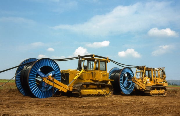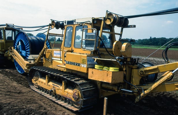 Im Jahr 2002 habe ich Maschinen zum Kabelverlegen von der Firma Rauner aufgenommen. Mit dabei waren ein Unimog, eine Hanomag D 700 D Super Raupe und eine Liebherr LR 731 mit Kabelpflug.
