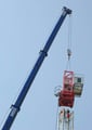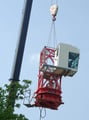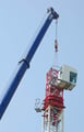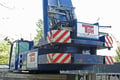 Der Kran hat eine max. Tragkraft von 100 Tonnen.