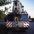 Der Kran hat eine max. Tragkraft von 50 Tonnen.
