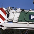 Der Kran hat eine max. Tragkraft von 25 Tonnen.