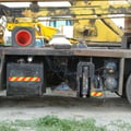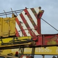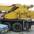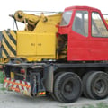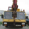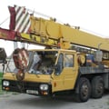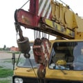 Der Kran hat eine max. Tragkraft von 30 Tonnen, das Fahrgestell ist von Mitsubishi.