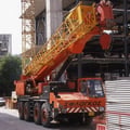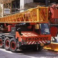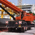 Der Kran hat eine max. Tragkraft von 70 Tonnen.