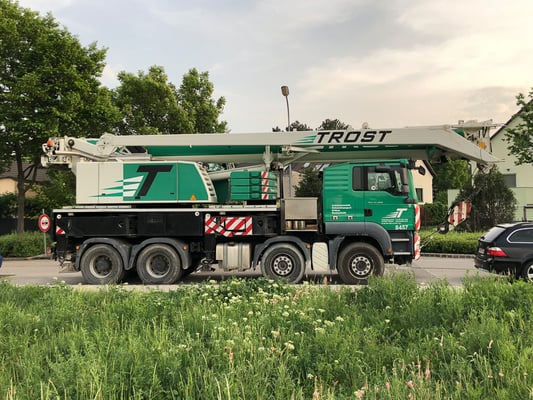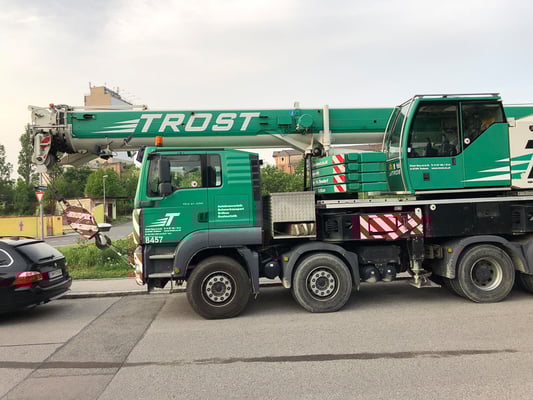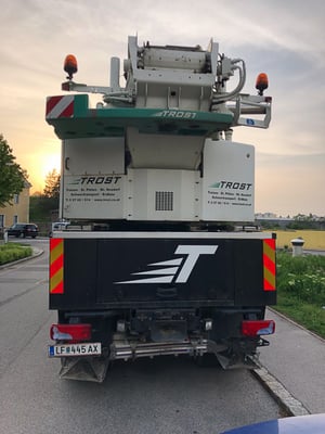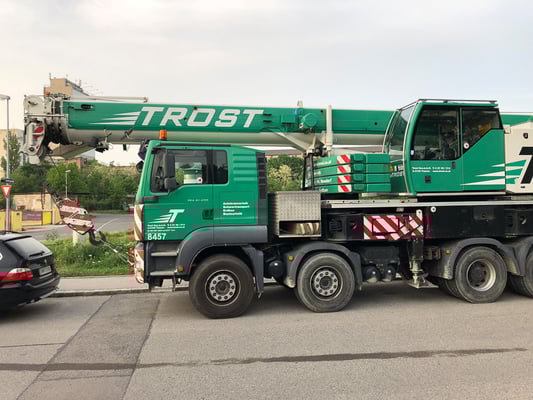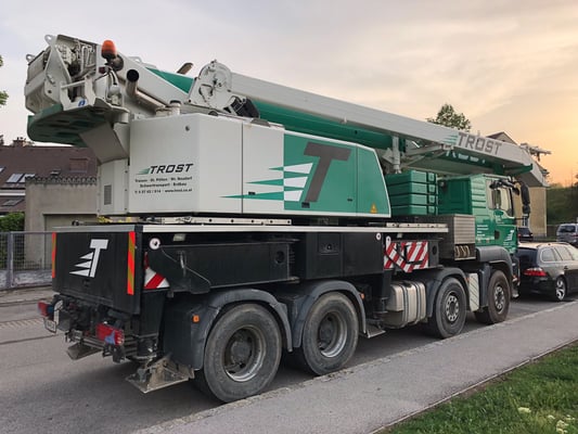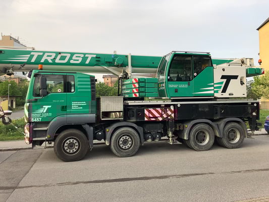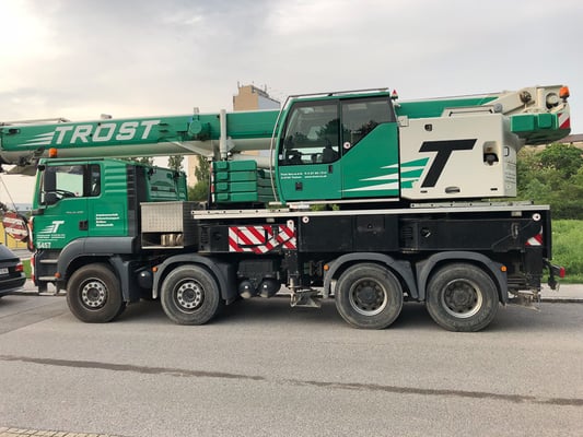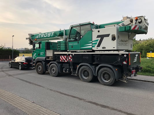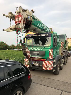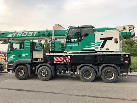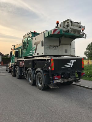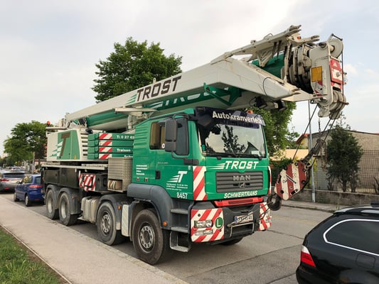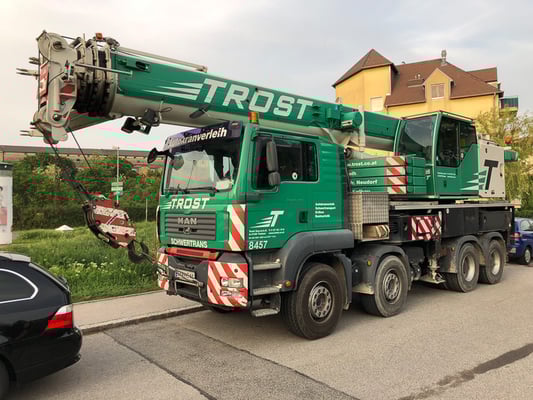 Der Kran hat eine max. Tragkraft von 45 Tonnen.