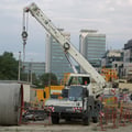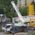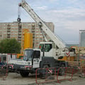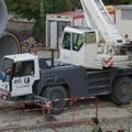 Der Kran hat eine max. Tragkraft von 30 Tonnen.