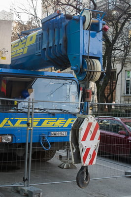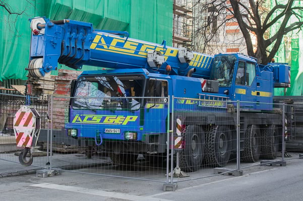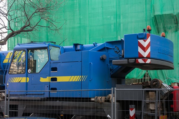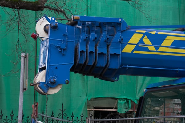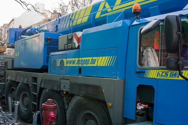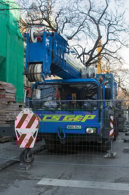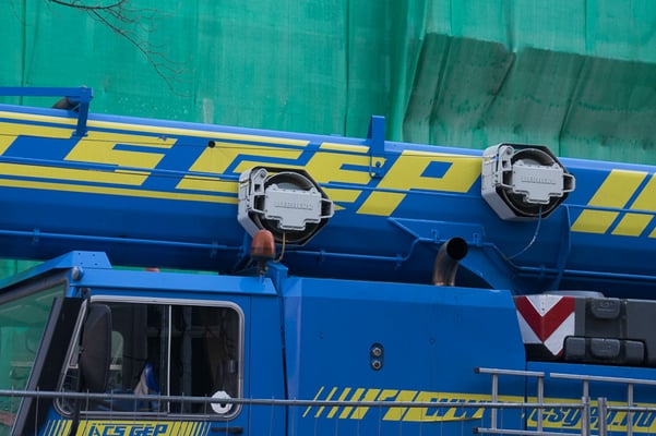 Der Kran hat eine max. Tragkraft von 70 Tonnen.