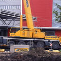Der Kran hat eine max. Tragkraft von 200 Tonnen.