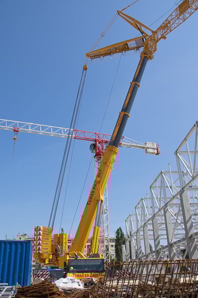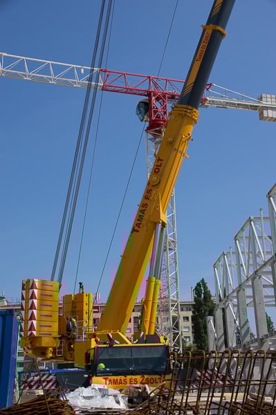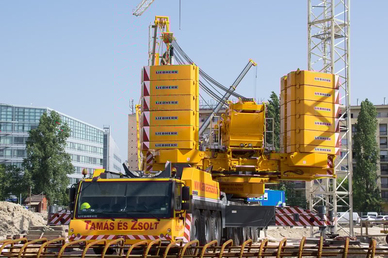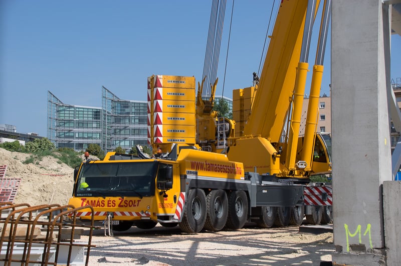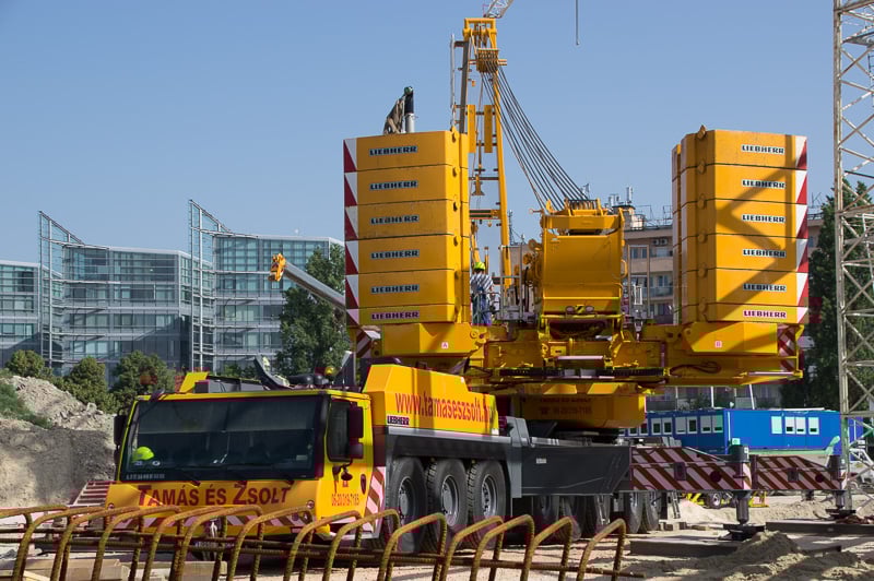 Der Kran hat eine max. Tragkraft von 450 Tonnen.